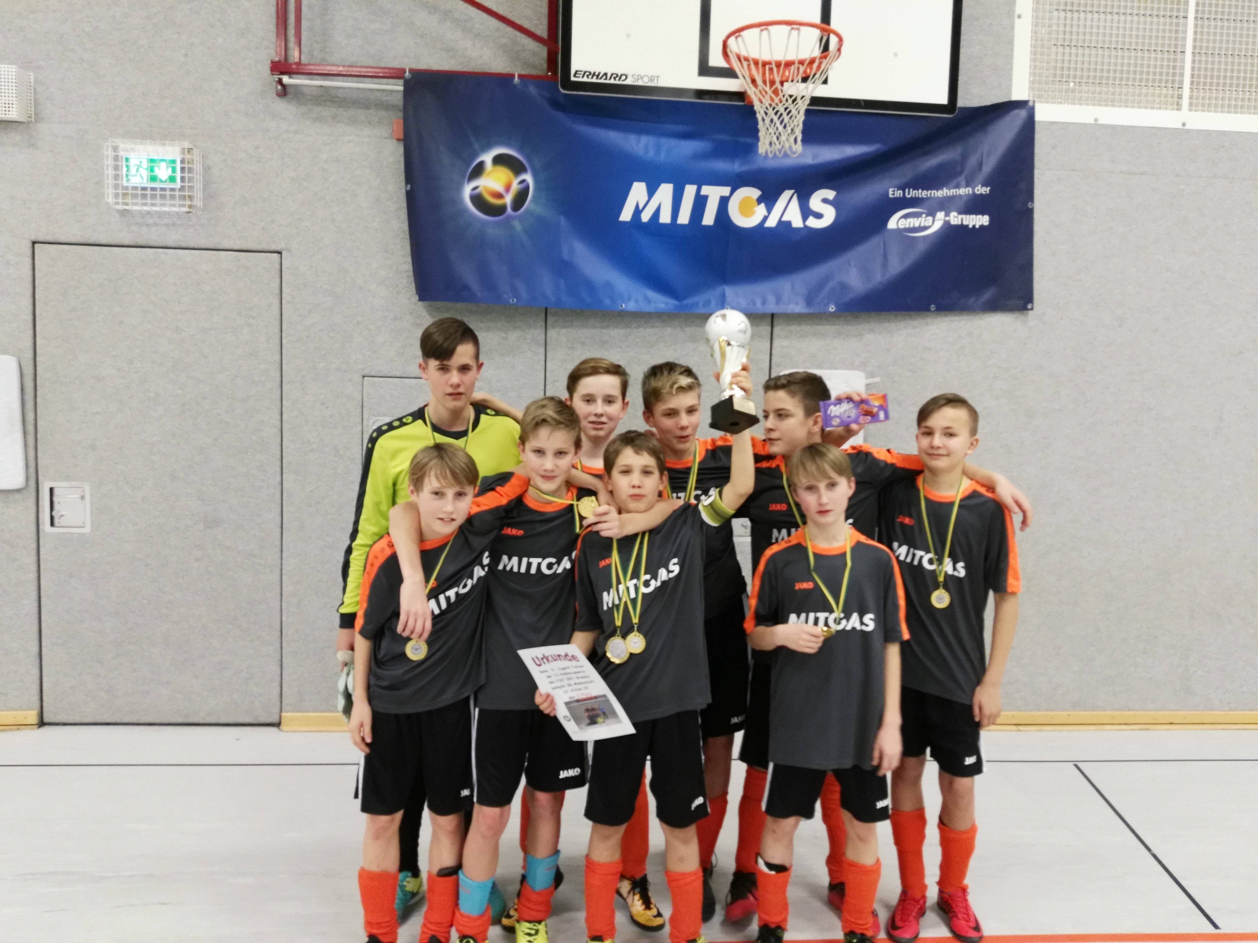 Am 28.01.18 spielten wir in Naunhof. Bei diesem Turnier spielten sehr gute Mannschaften. Wir belegten den 2. Platz hinter Dresden Striesen. Jannik wurde bester Torwart. Am 04.02. in Brandis schossen wir 33 Tore und belegten den 1.Platz. Yves wurde als bester Spieler ausgewählt und Jan wurde Torschützenkönig. Eine sehr erfolgreiche Hallensaison der D-Jugend, diese natürlich auch ein riesen Schub für die nächsten Aufgaben gibt.