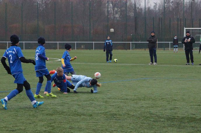 Das Spiel begann recht flott und auf dem Kunstrasenplatz lief der Ball recht gut. Beide Mannschaften erspielten sich erste Chancen. Den Mädchen gelang in der 11. Minute die 1:0 Führung. Das Spiel nach vorn klappte bei unseren Gegnerinnen richtig gut, doch in der Abwehr und der Spieleröffnung der Torhüterin lagen ihre sichtlichen Schwächen. Diese sollten unsere Jungs heute nutzen, um Tore zu schießen. So konnte Theo mit einem sehenswerten Schuss, in der 17. Minute den Ausgleich erzielen. Mit einem 1:1 ging es dann zur Pause in die Kabine.